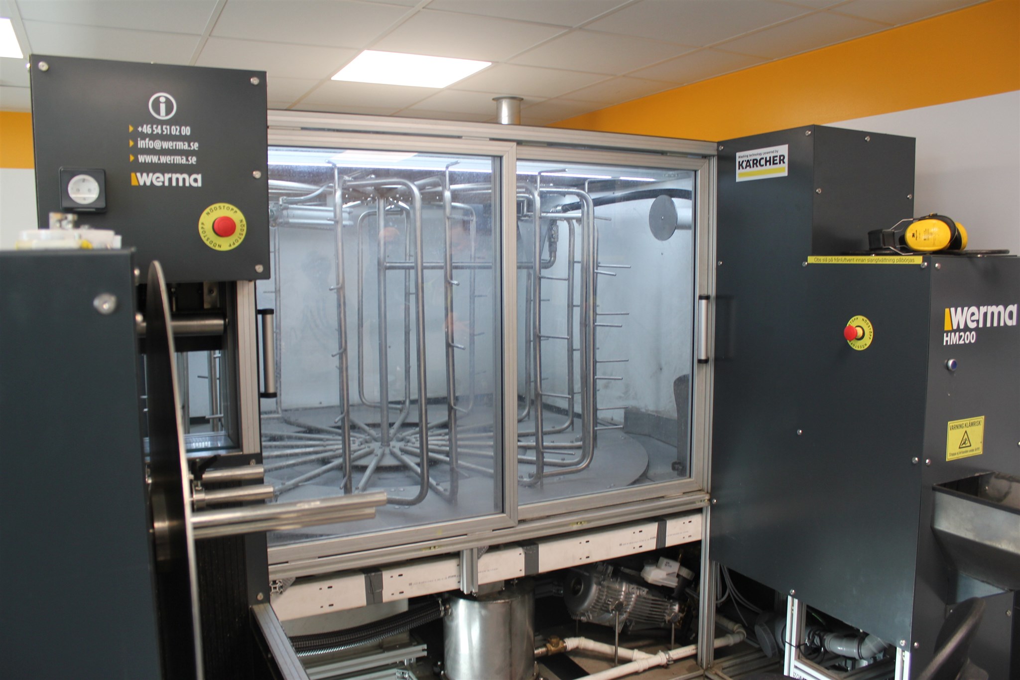 En sinnrik konstruktion som drar ut slang, rengör, testar och slutligen rullar ihop den