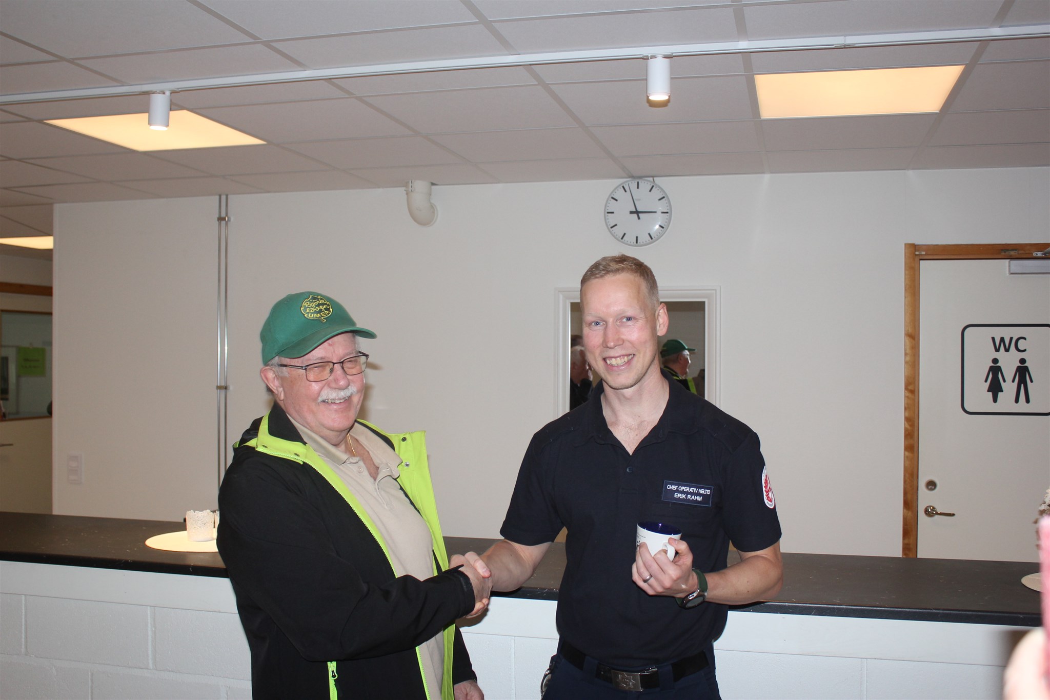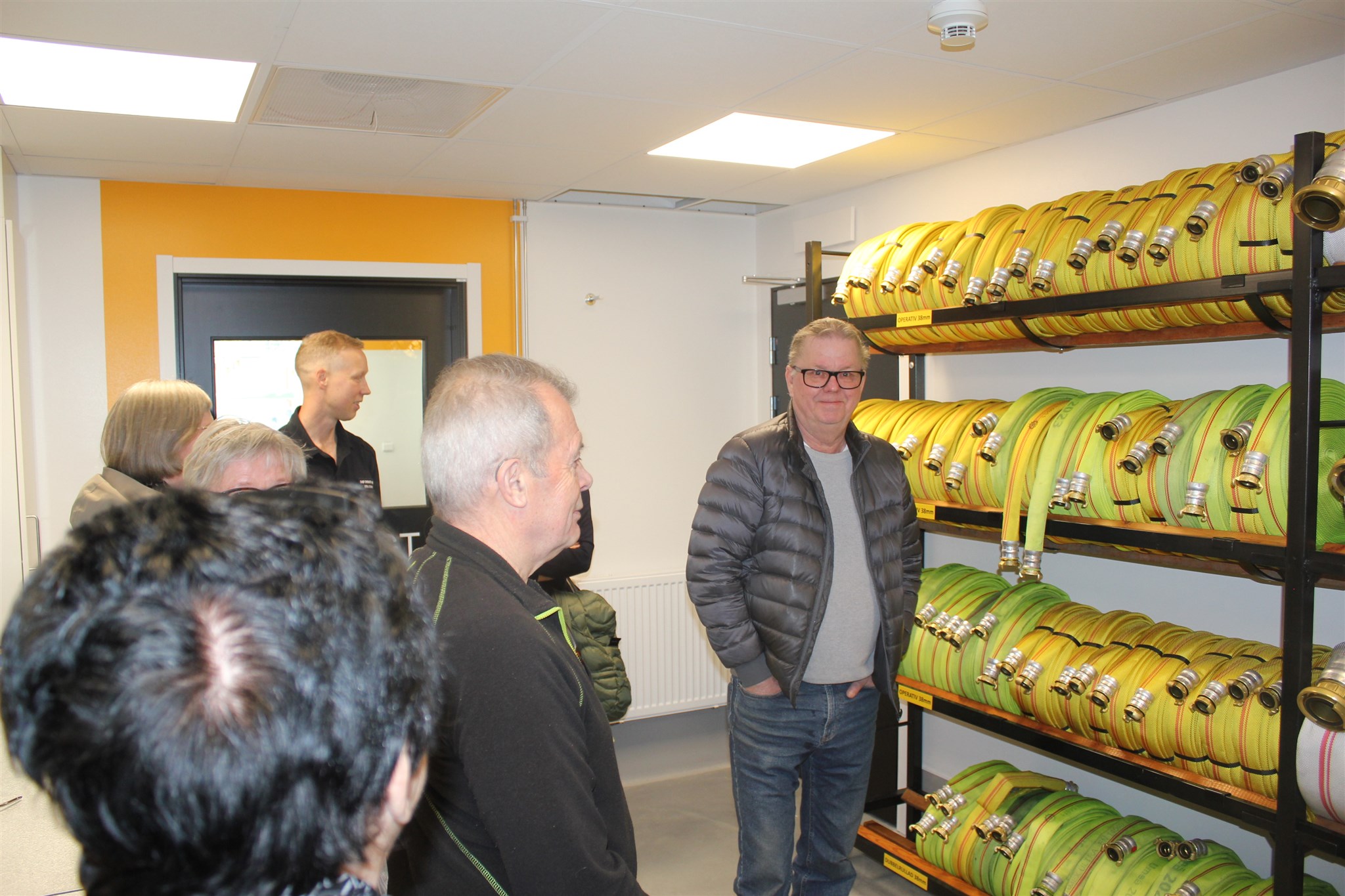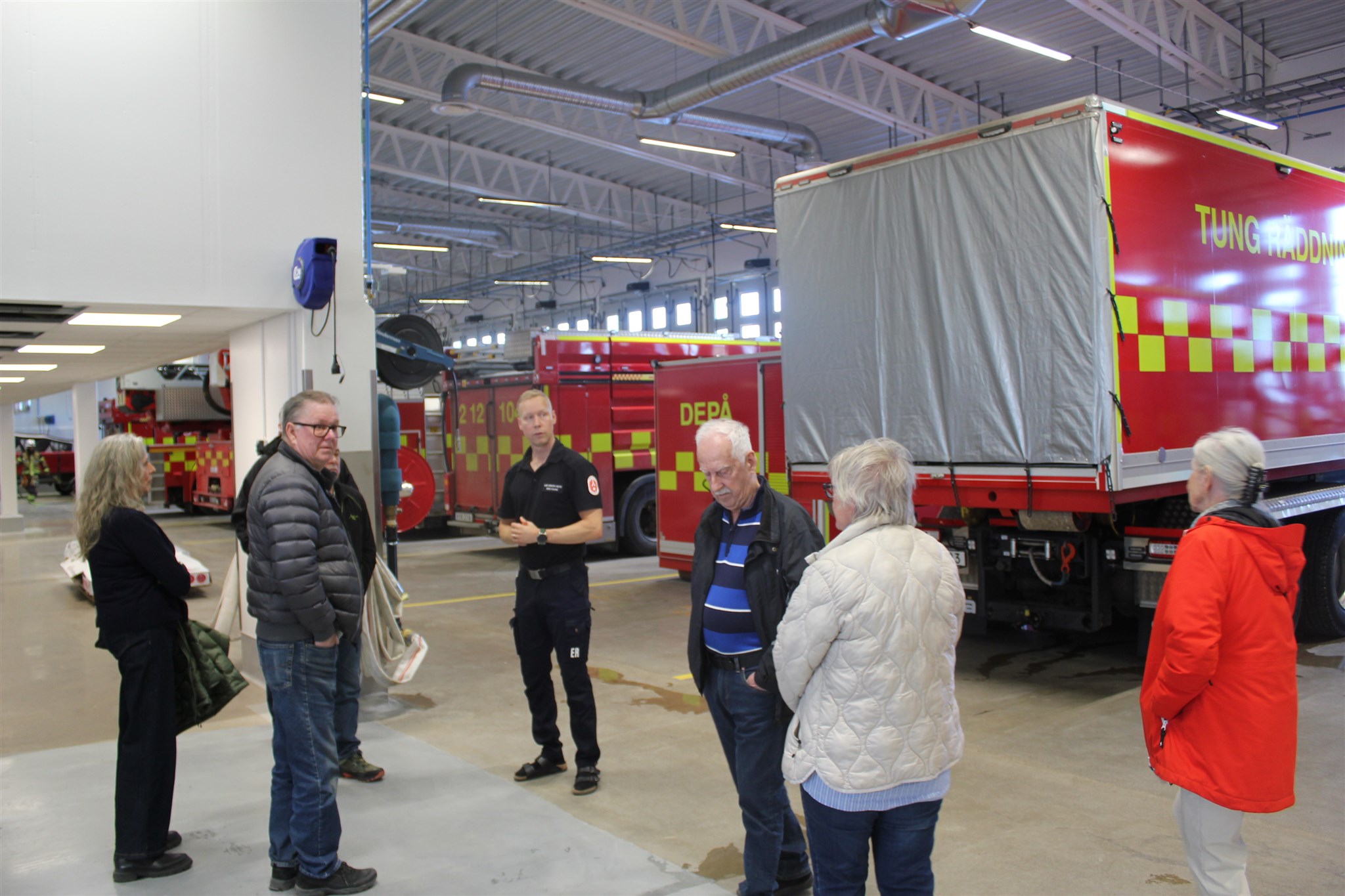 Några av polispensionärerna lyssnar på information om nya brandstationen