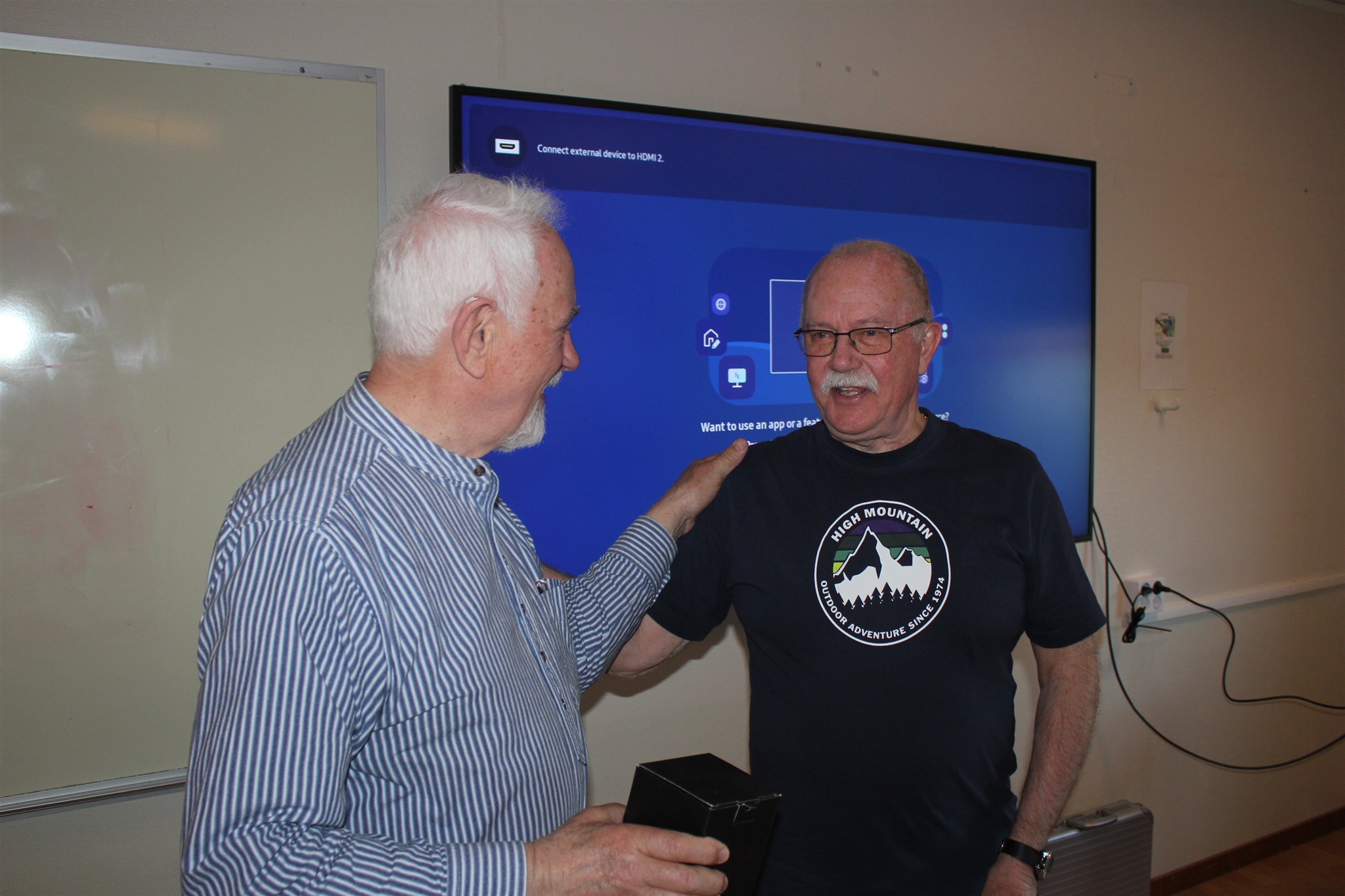 Ordförande Jerry Sandström tackar föreläsaren med en gåva