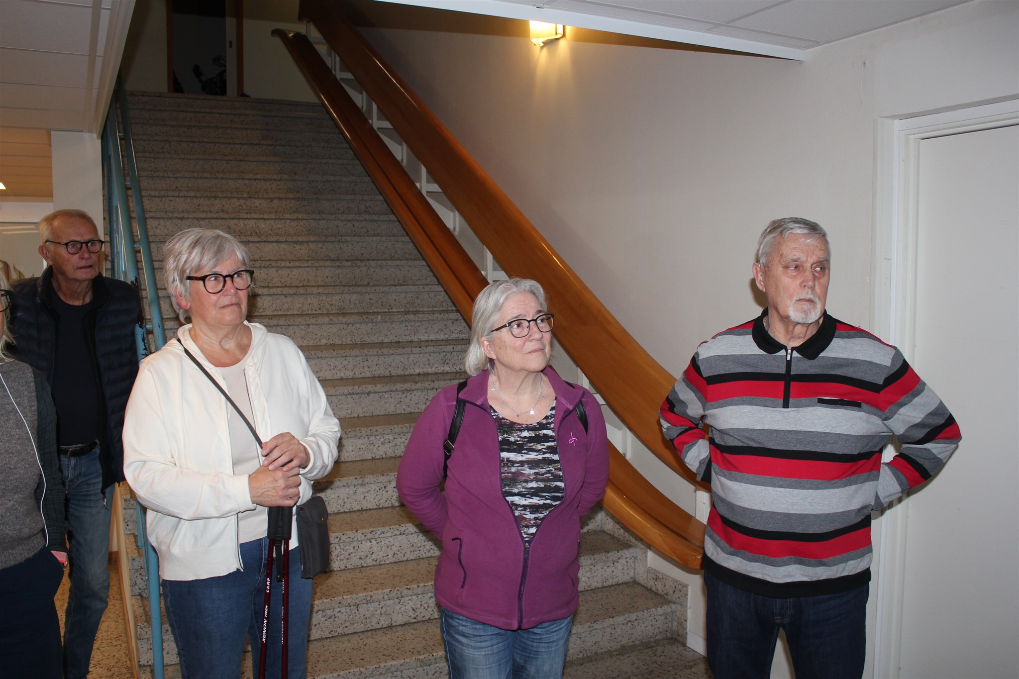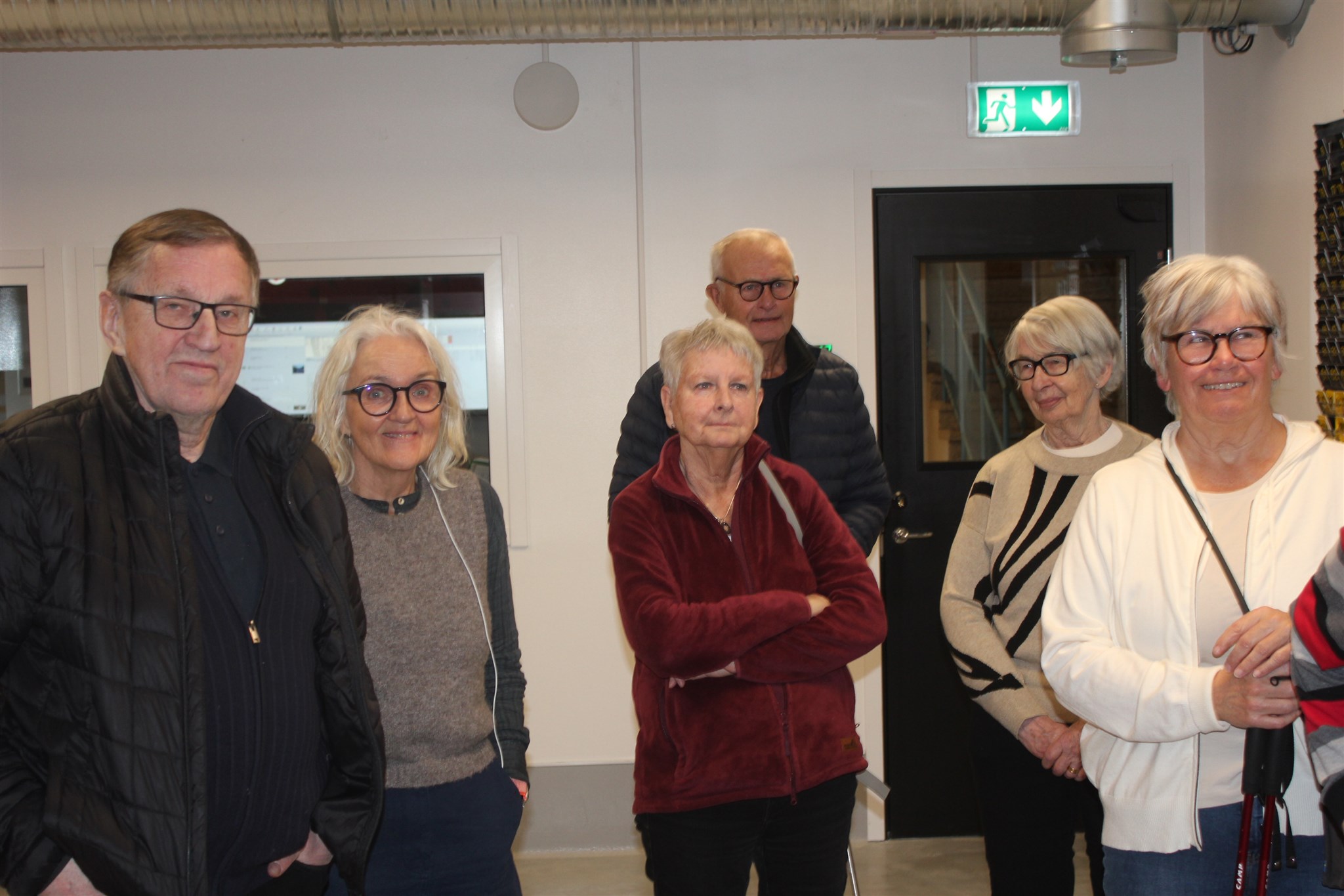 Några av polispensionärerna lyssnar på information om nya brandstationen