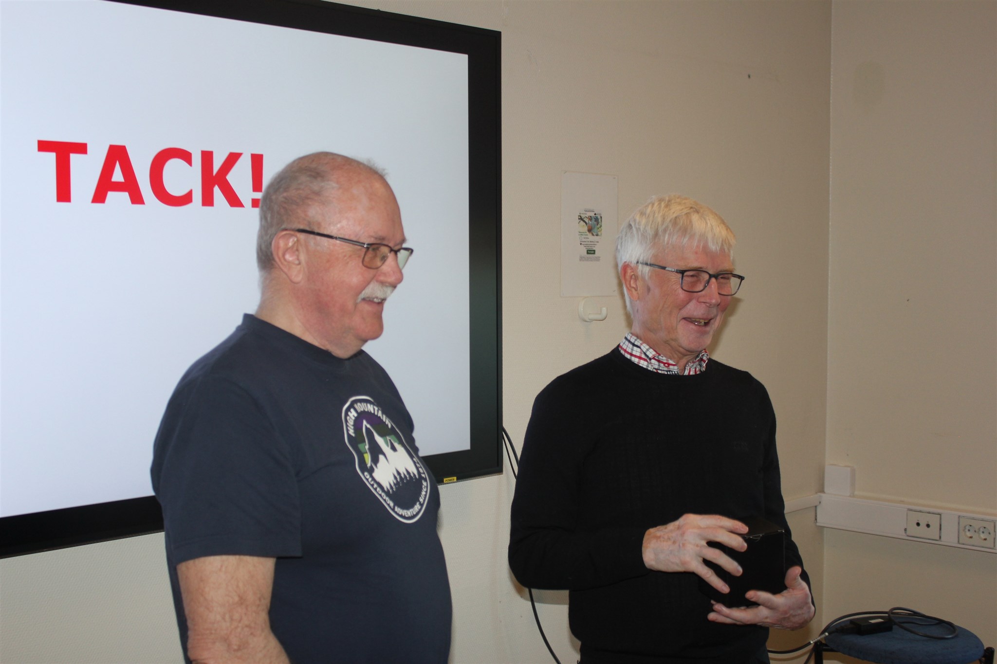 Ordförande Jerry Sandström tackar föreläsaren med en gåva